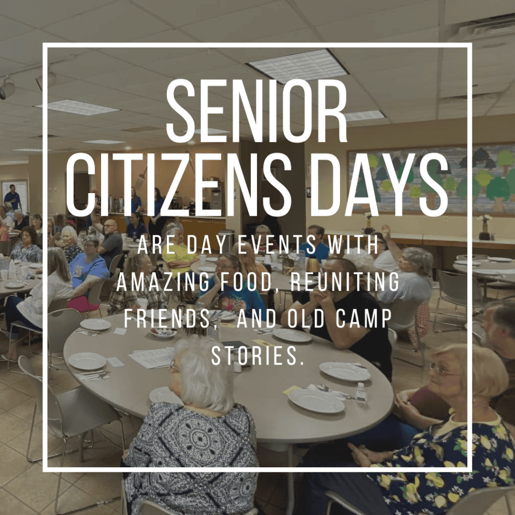 Senior Citizens Days happen in the Fall and are 2 day events. Many of the Senior Citizen Homes in the area attend. This is a time to share a meal and reconnect. There is always stories about Camp’s past!