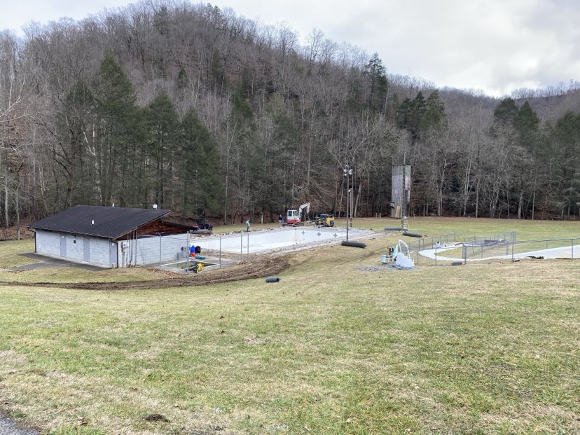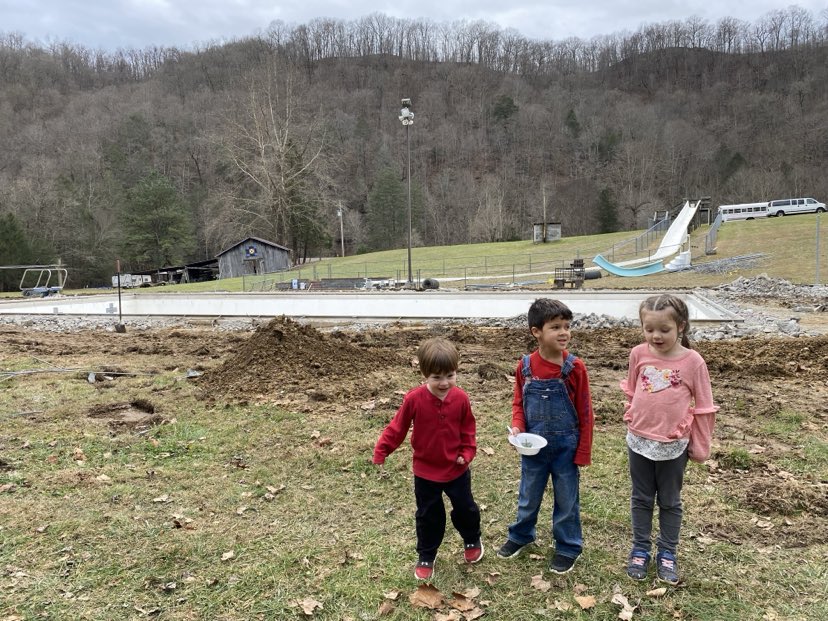 The concrete from the pool patio has found a new home forming a new embankment for our swinging bridge. The swinging bridge has been in disrepair since the flood. So it’s exciting to see progress on repairs!