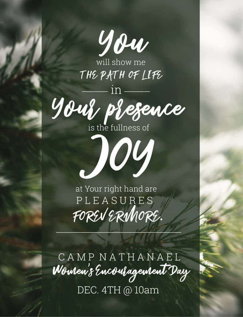 I, Tess, was able to attend a Women’s Encouragement Day at Camp Nathanael. We joined together to learn about joy from God’s perspective. It was amazing to gather with a group of women to be encouraged and challenged in practical ways to bring joy into our everyday lives. We were able to bring in speakers Kimmi Sparkman, a long time staffer and now volunteer at camp, and Jill Napier.